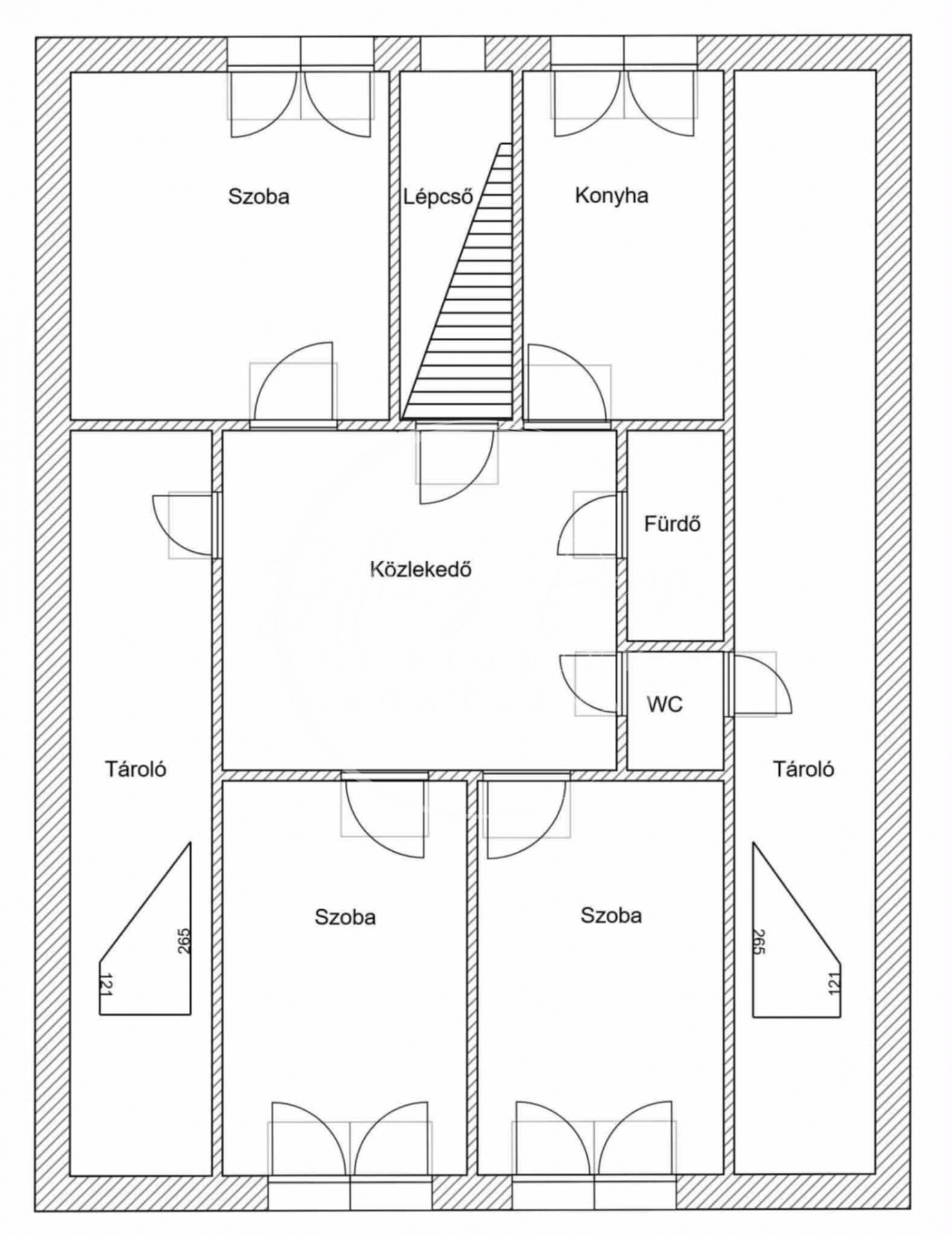 A szuterén szinten található a vegyes tüzelésű kazán, valamint hely a tűzifa tárolására.