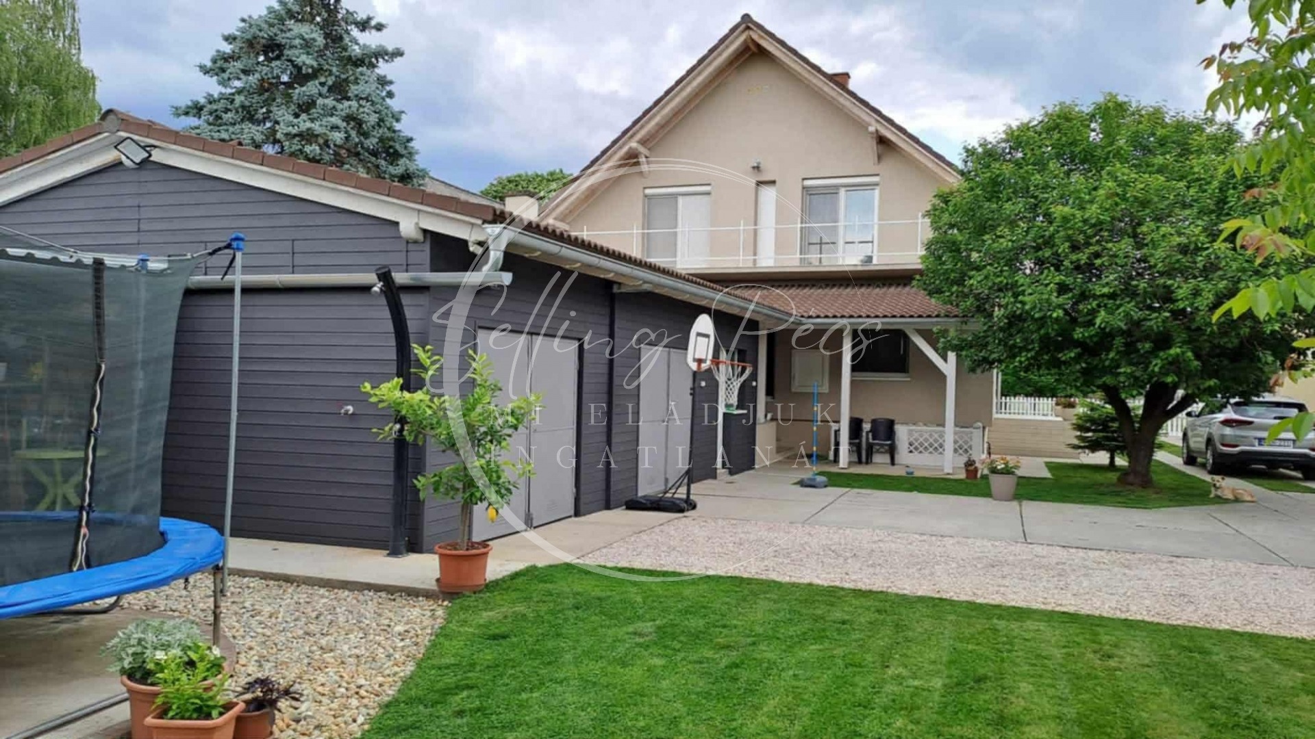 A házban 6 szoba, 2 fürdőszoba, konyha és nagy fedett terasz található, így minden adott a kényelmes, nyugodt családi élethez.