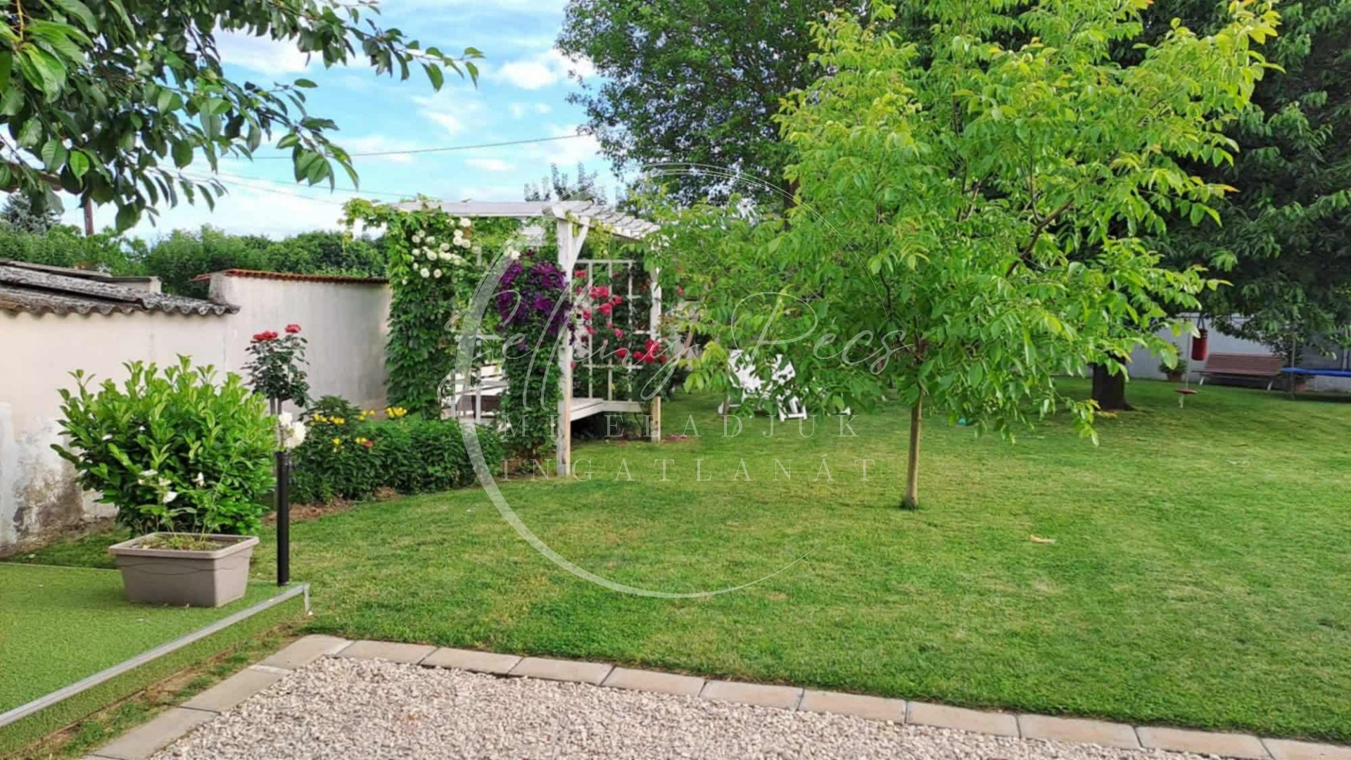 gondozott, gyepesített kert