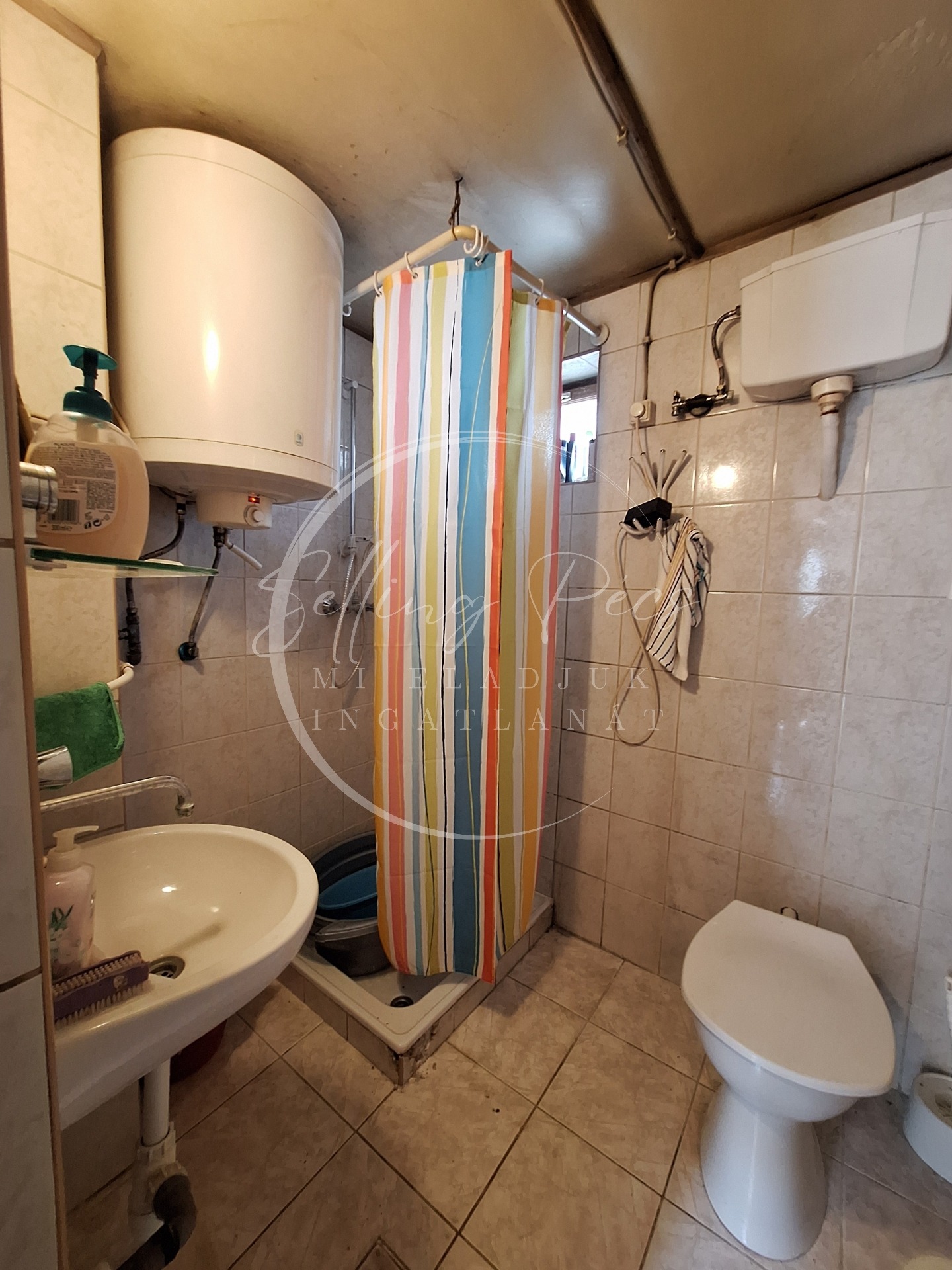 fürdőszoba zuhanyzóval és WC-vel