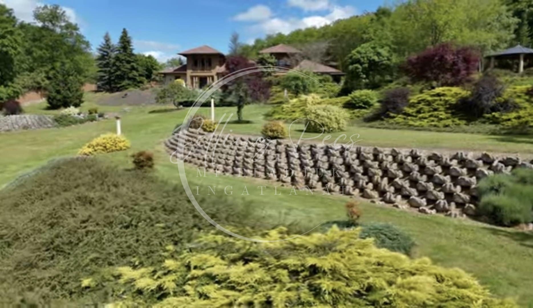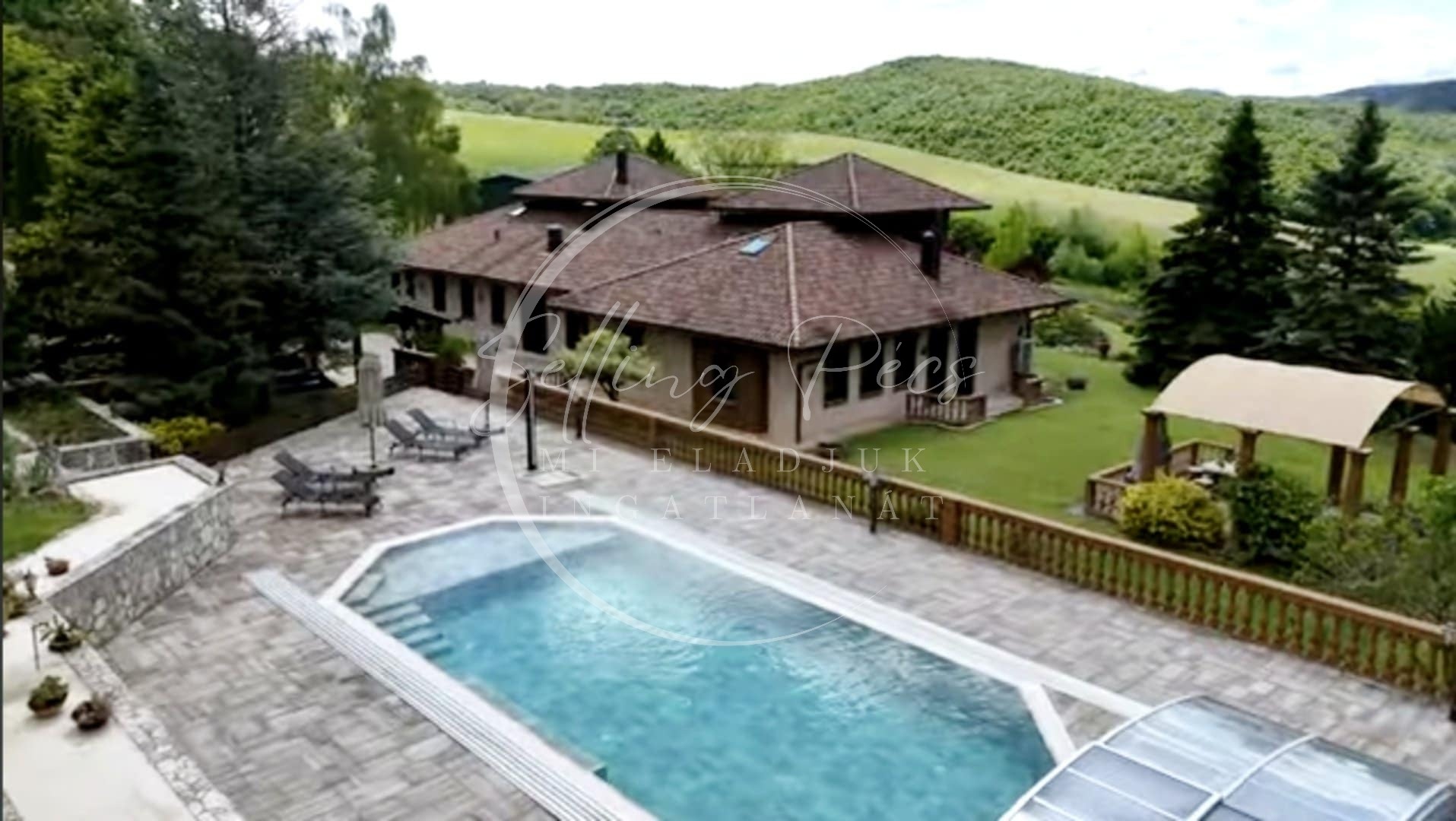 Pécstől 10 perc autóútra, a Mecsek meseszép lankáin, megvásárlásra kínálunk egy 2002-ben épített, mediterrán stílusú, örökpanorámával rendelkező, erdővel és mezővel körül ölelt, 28 hektáron elhelyezkedő mediterrán birtokot.