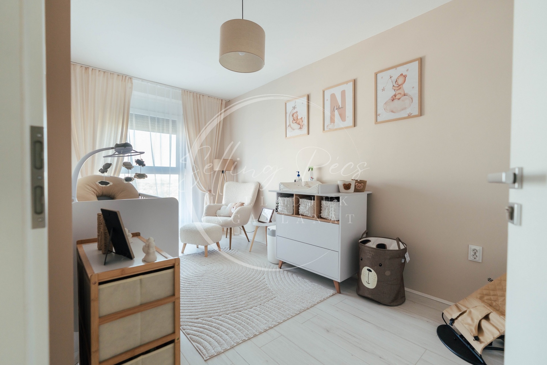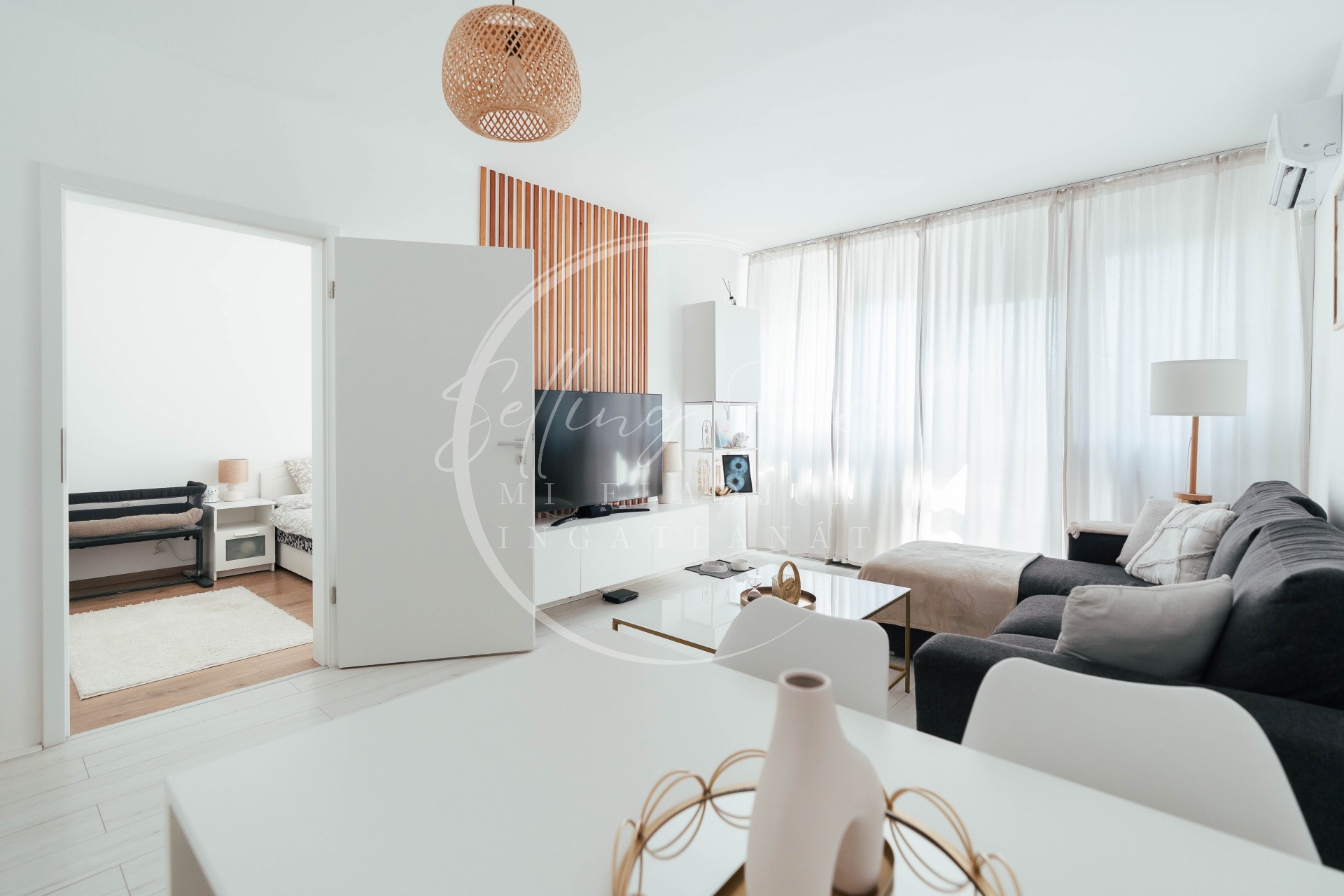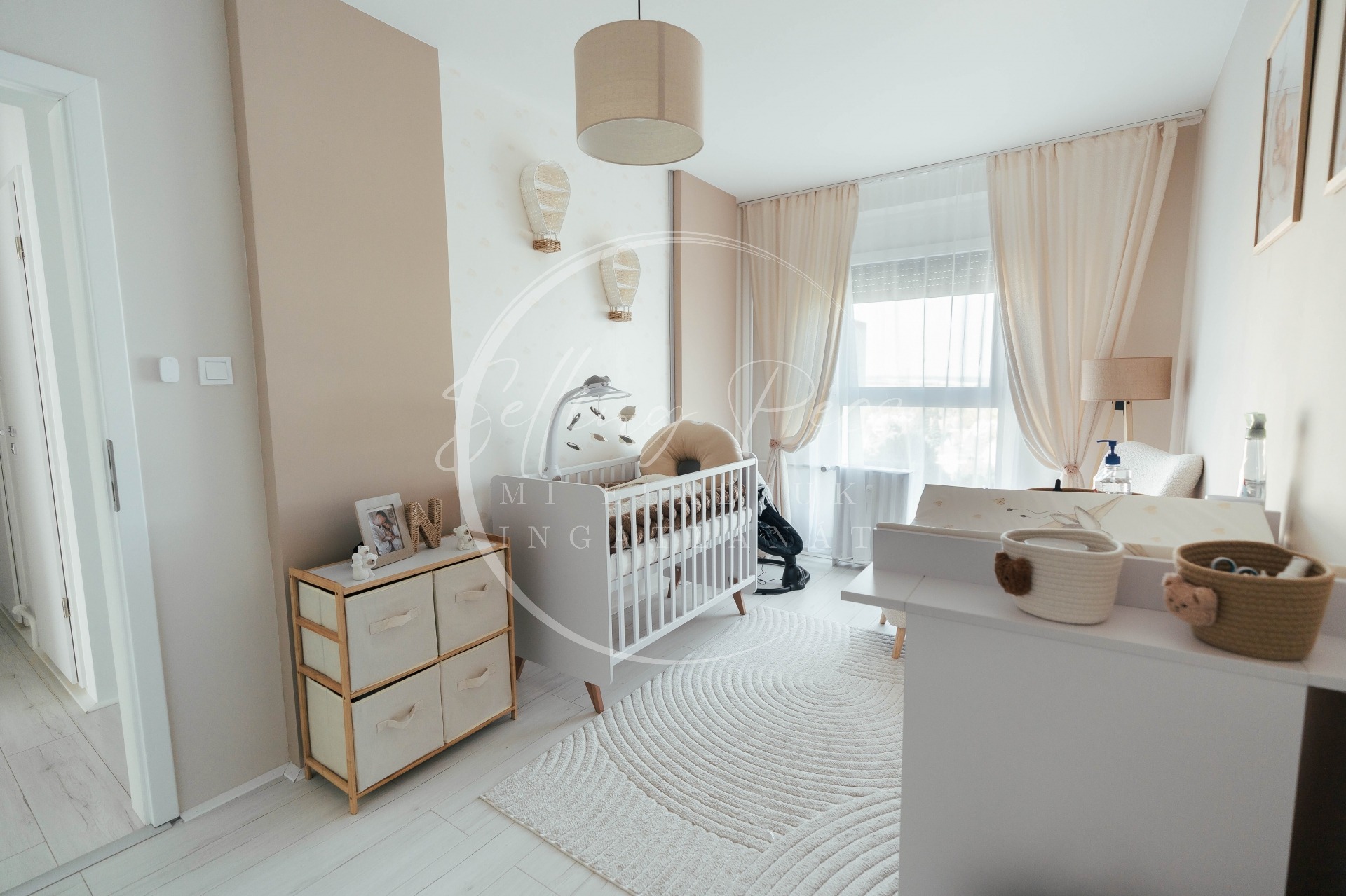 tágas nappali, két külön nyíló hálószoba, konyha, fürdőszoba, külön WC, közlekedő, valamint egy kellemes méretű terasz, amely ideális pihenéshez vagy esti kikapcsolódáshoz.