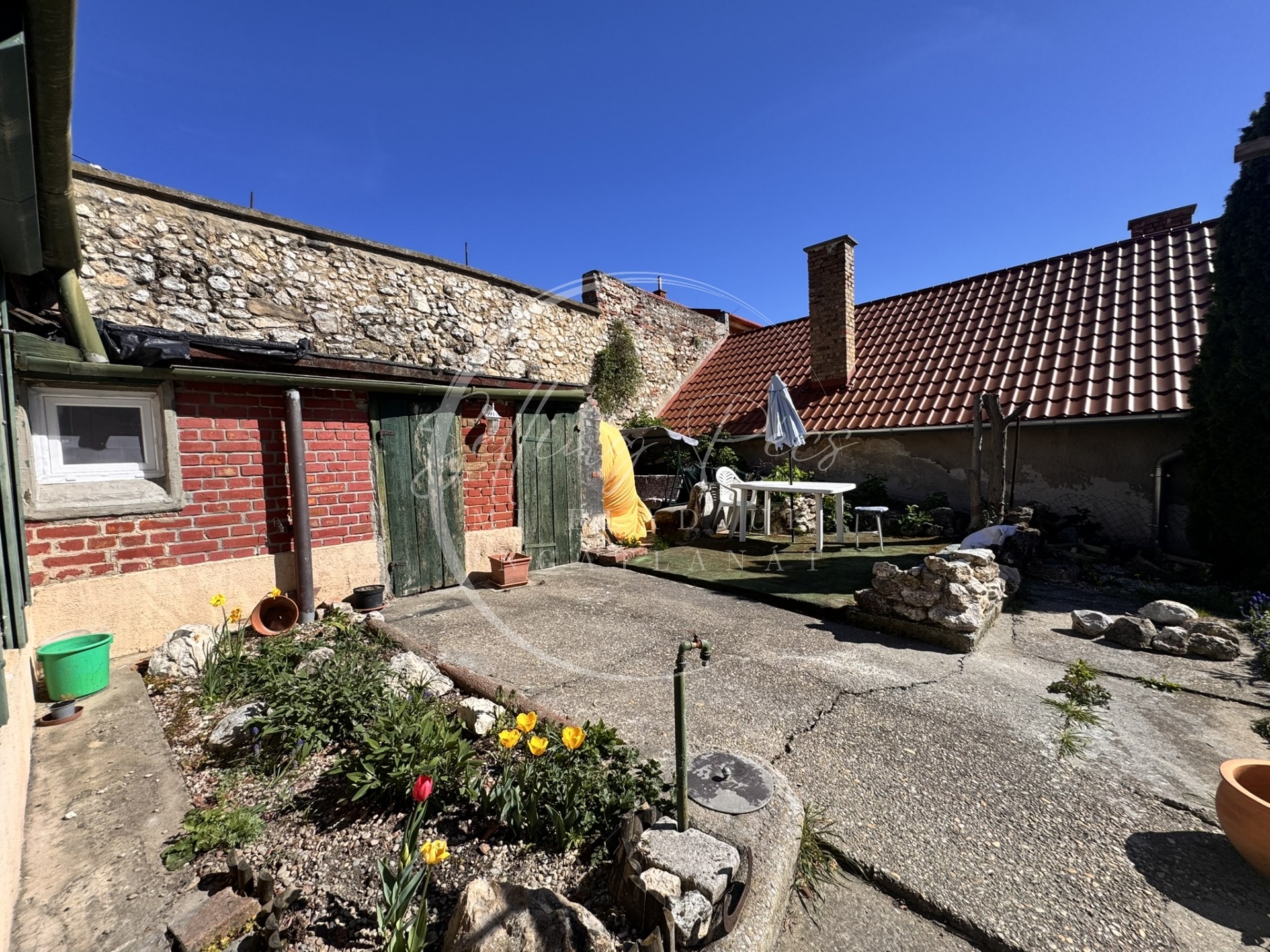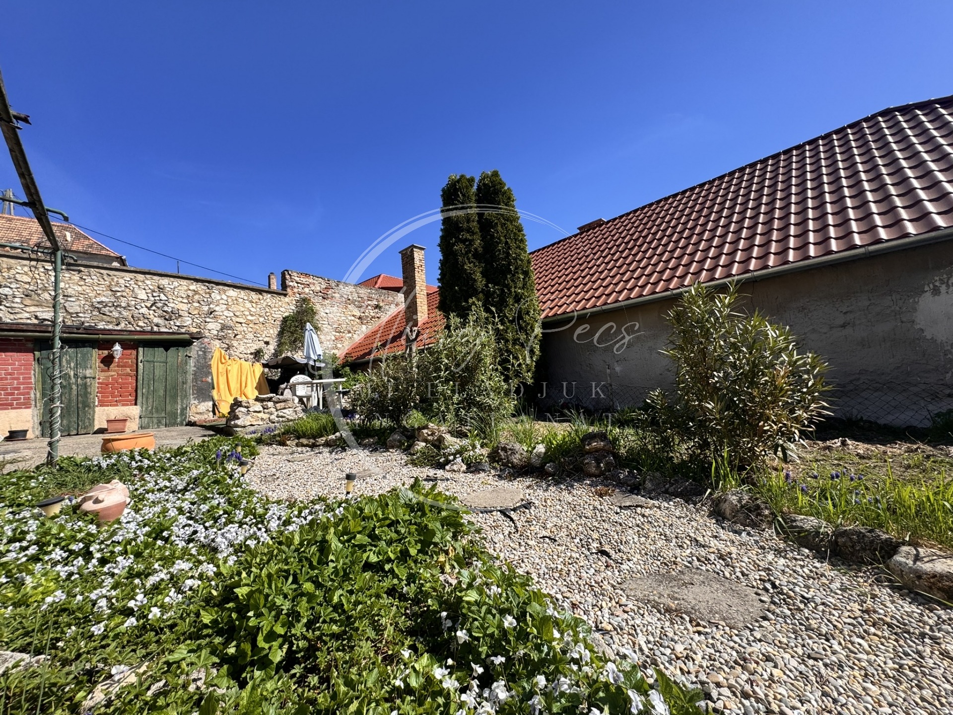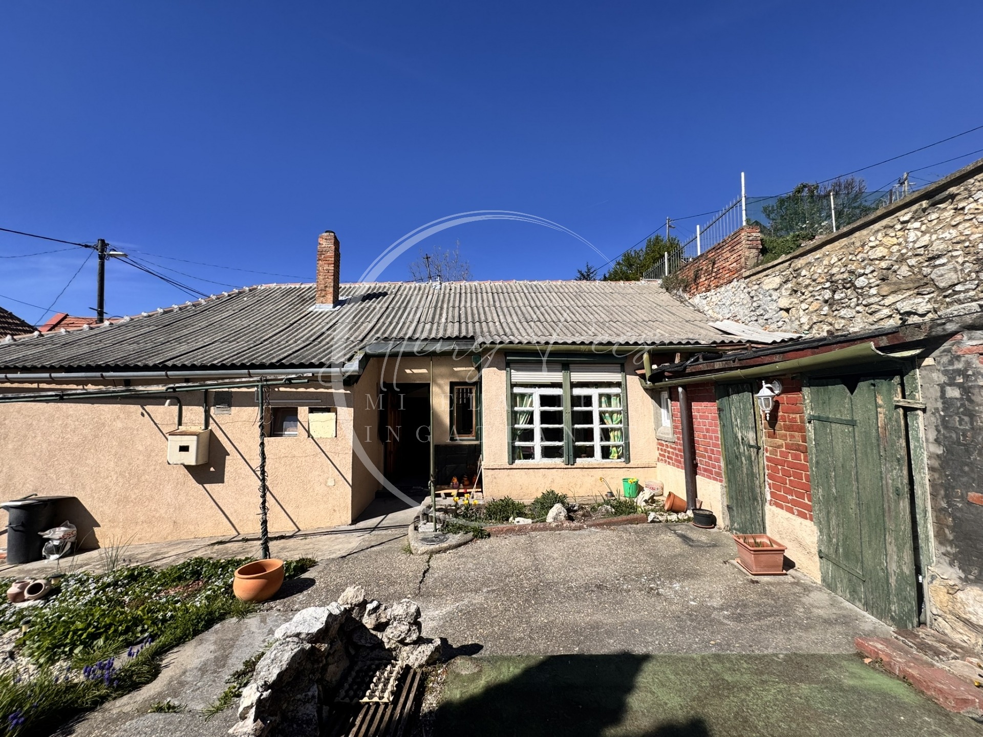 Az udvarban melléképületek is helyet kaptak. A telek adottságainak köszönhetően garázs vagy udvari beálló is kialakítható parkolás céljából.