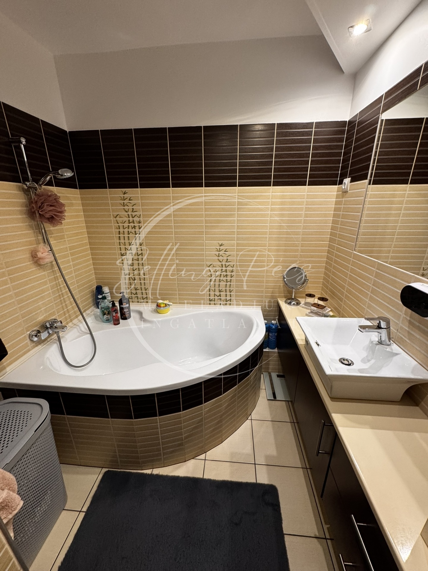 A fürdőszoba átalakítása során a helyiség megnagyobbításra került, így egy tágas
