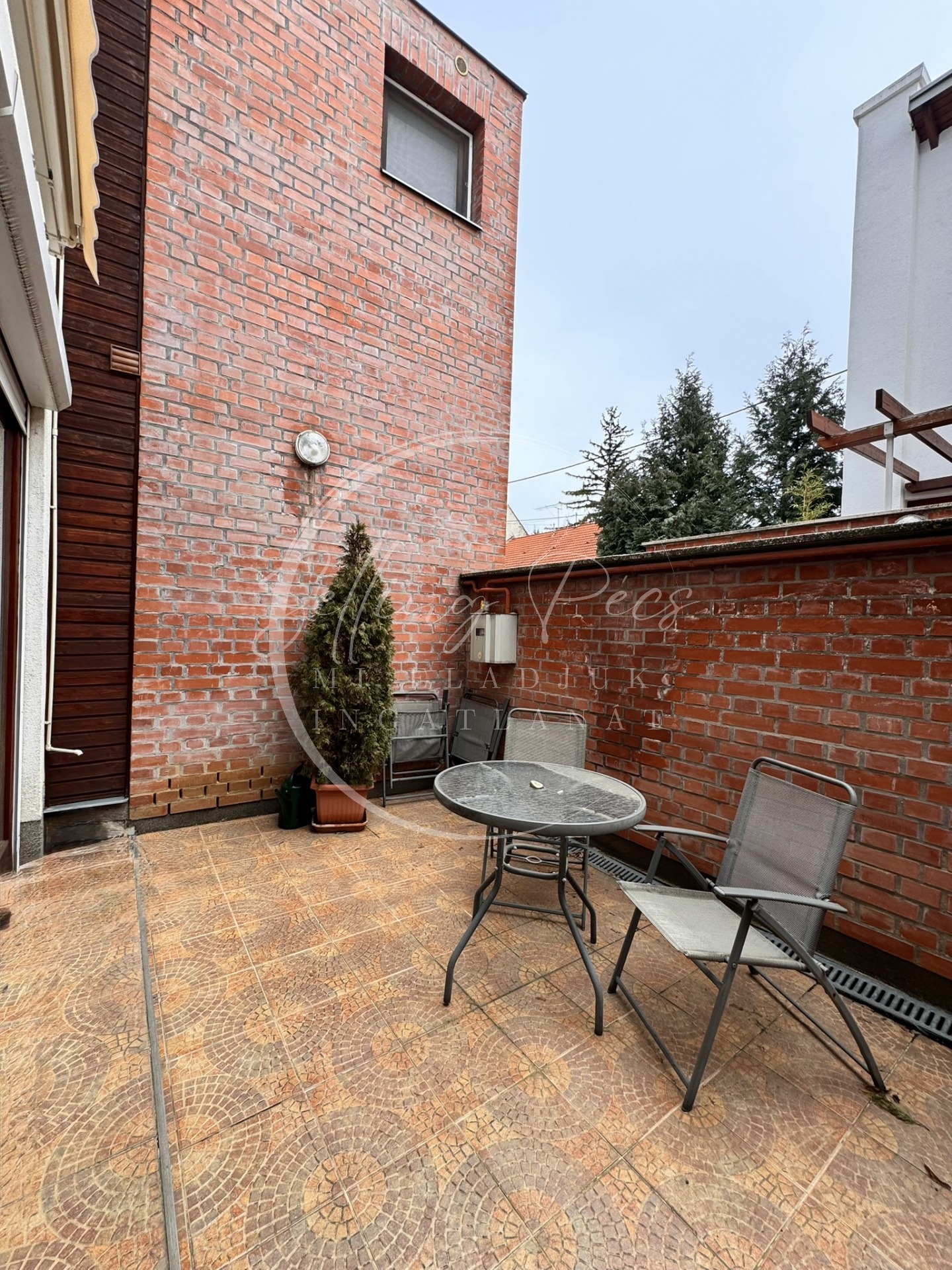 -16 m²-es, zárt, térkövezett terasz, amely kiváló helyszín pihenéshez vagy baráti összejövetelekhez