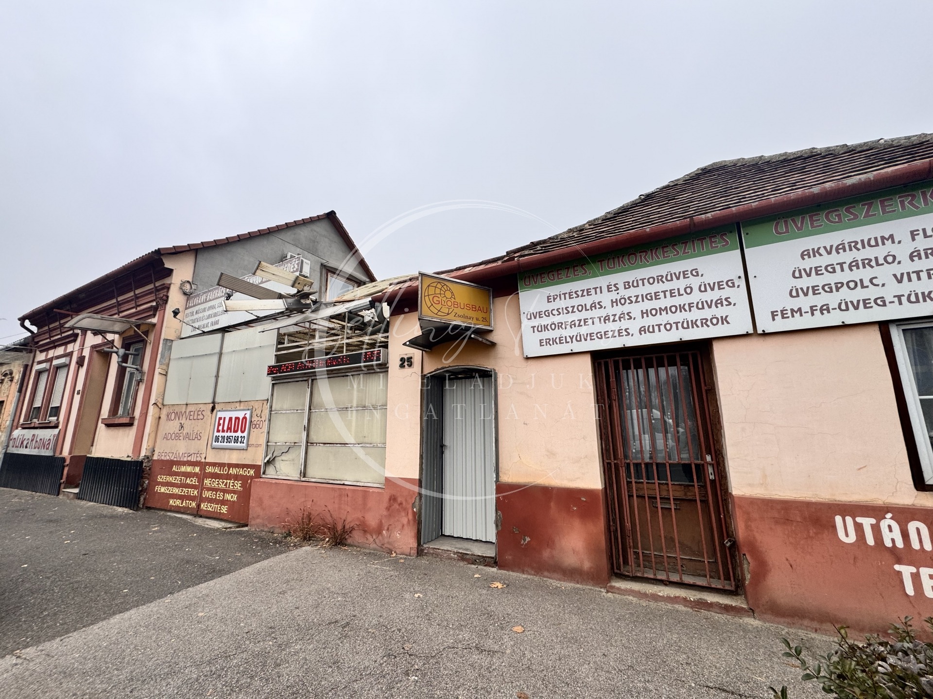 Földszint: 25 m² üzlethelyiség, 150 m² raktárak