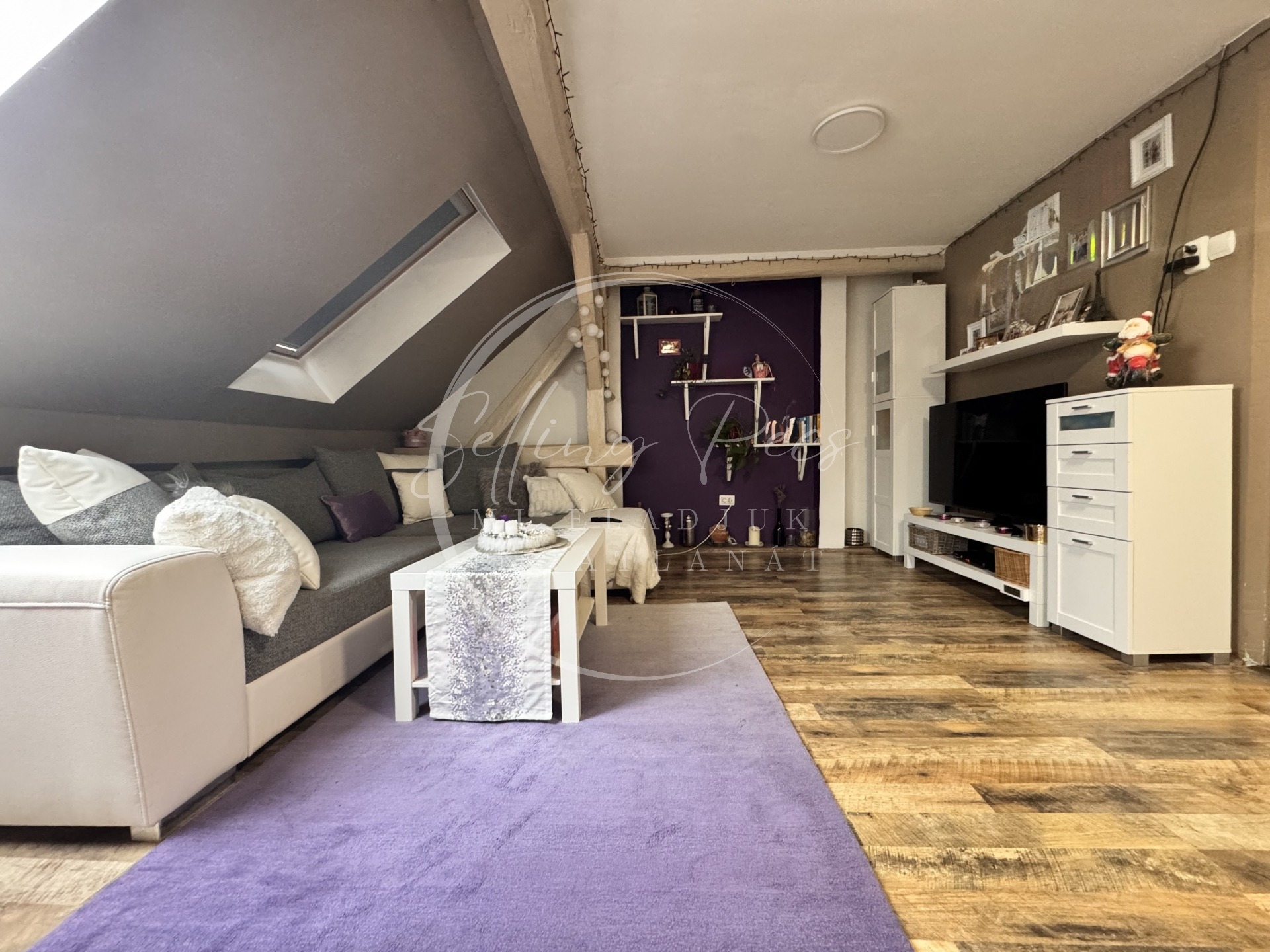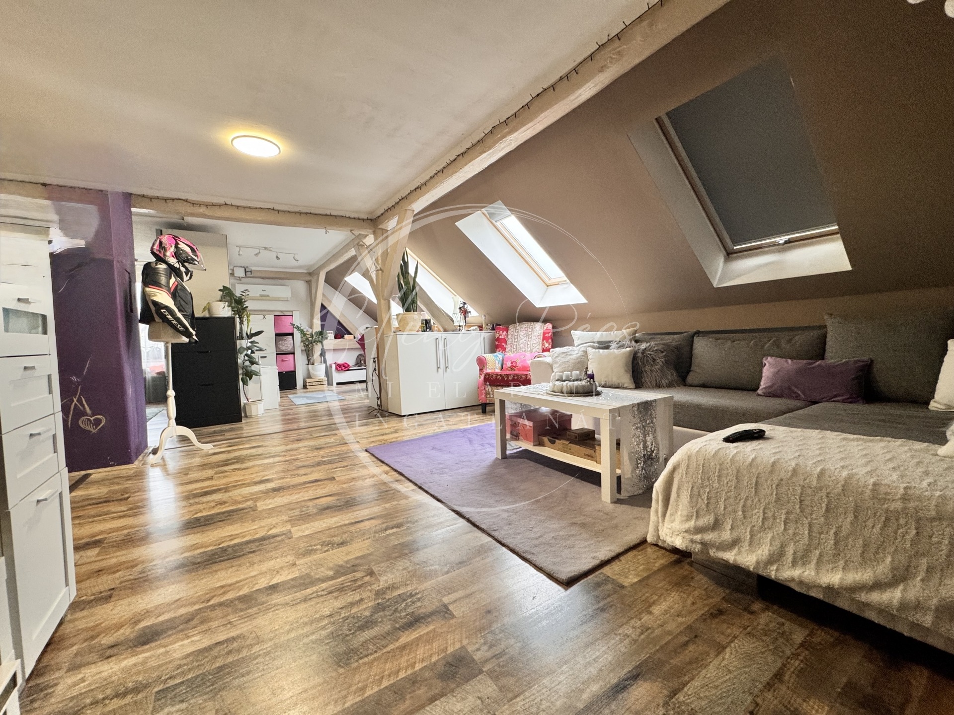 Emelet: 50 m² tetőtéri lakás + 10 m² előtér