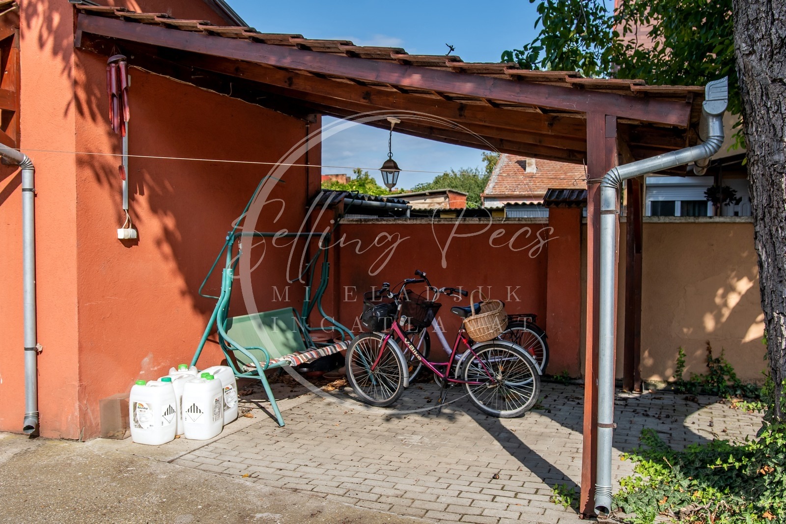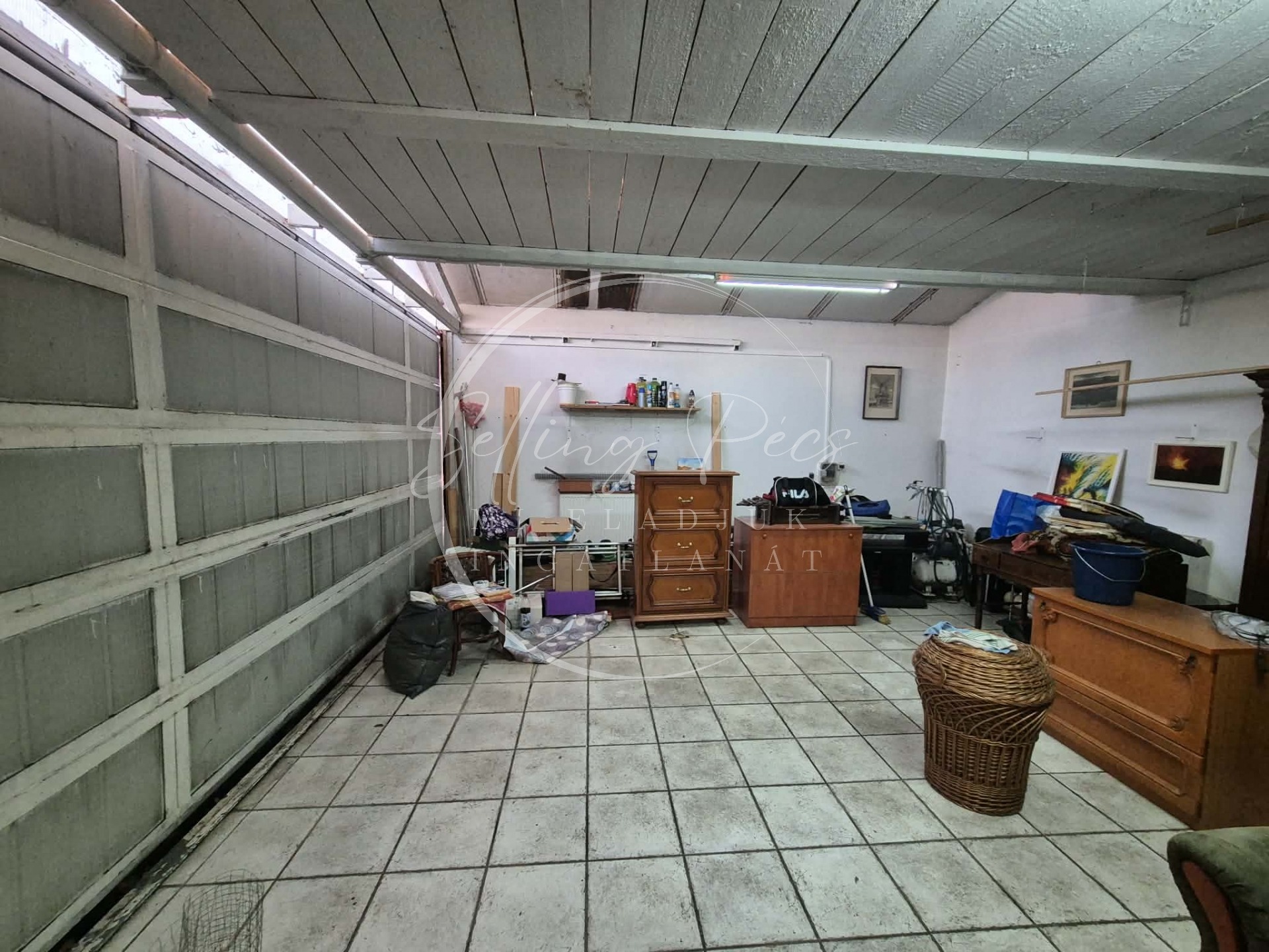 -Az udvarban 68m2 fűthető gazdasági épület található, amely a garázs kihasználása mellett otthont adhat bármi féle kis vállalkozásnak, mivel villanybojlerrel melegített vízzel, zuhanytálcával felszerelt.