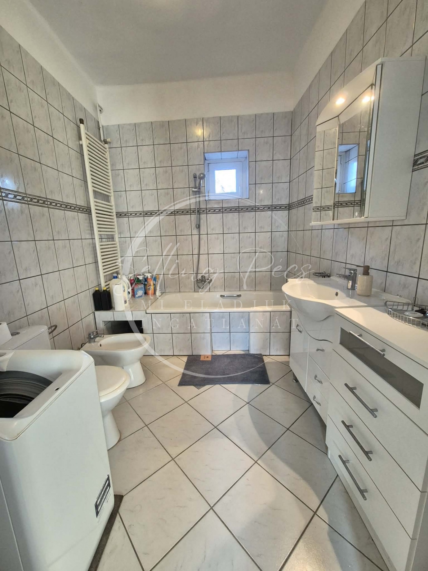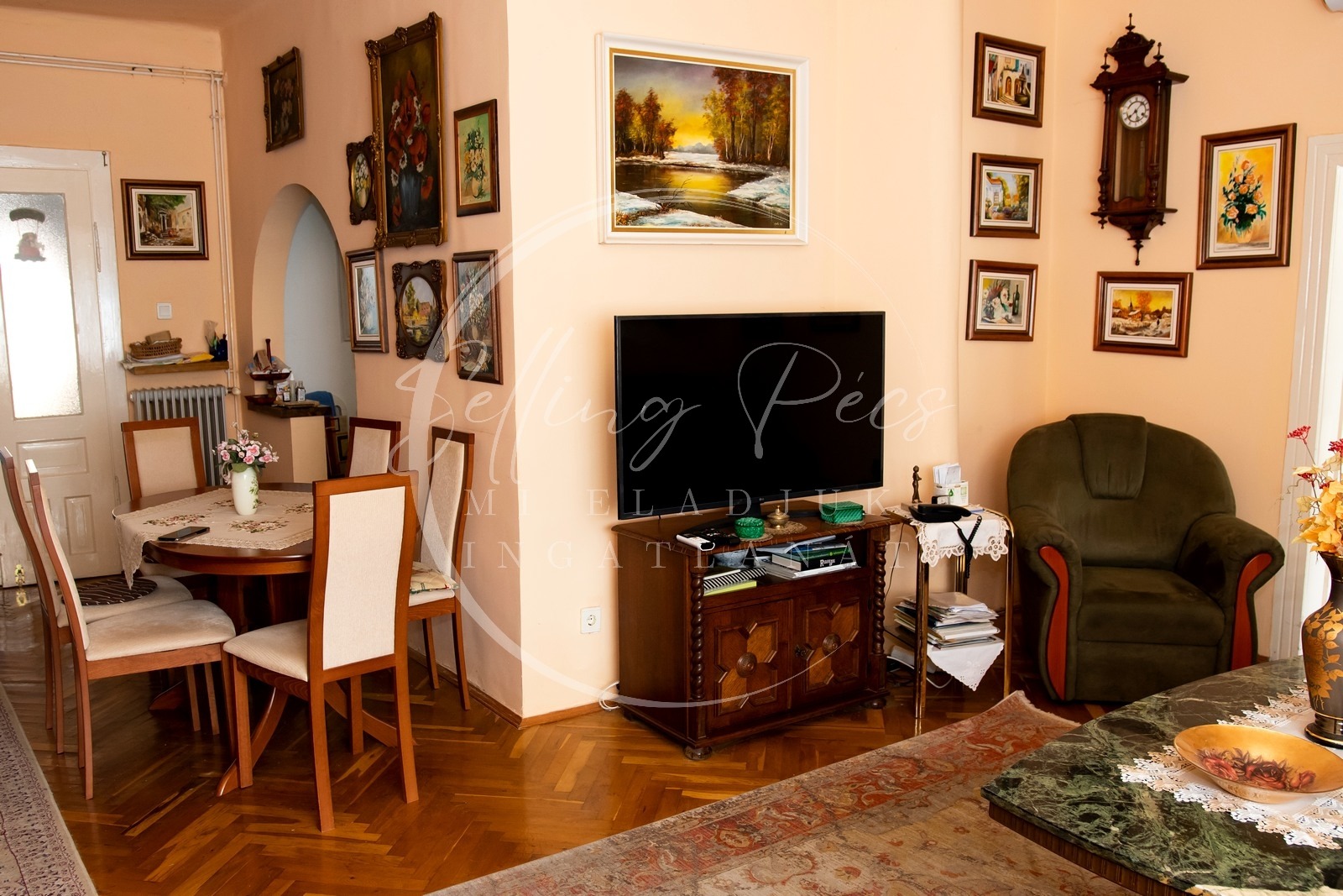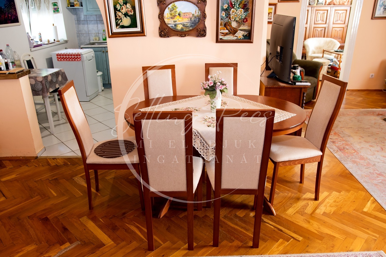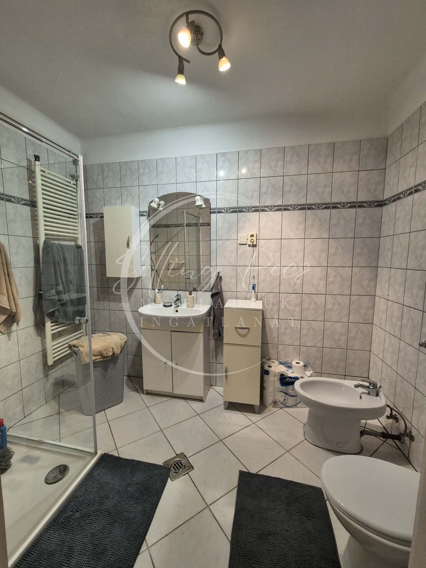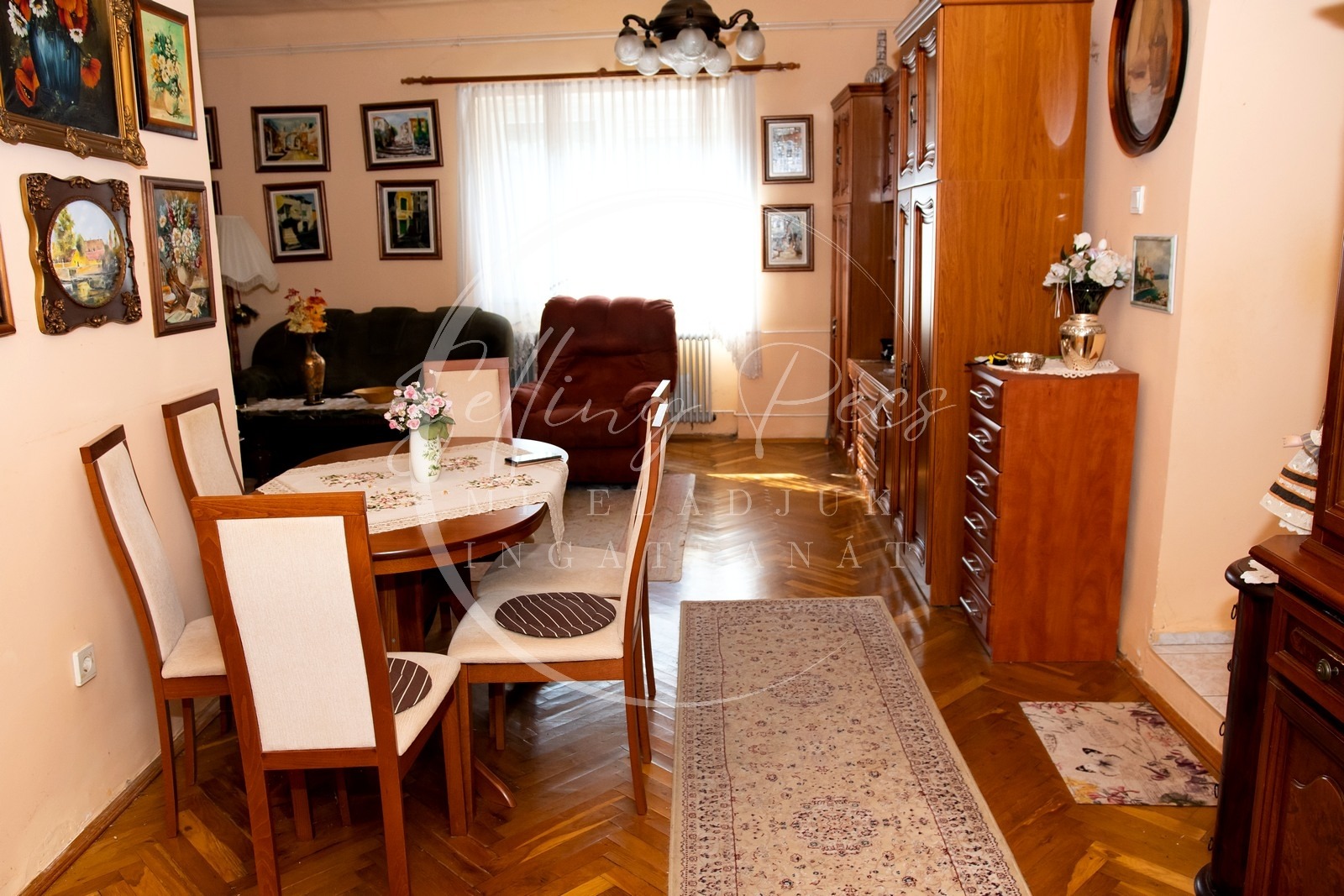 -Elosztása: előszoba, konyha, spájz, étkező, nappali, 3db hálószoba, 2db fürdőszoba + 2db wc.